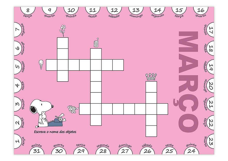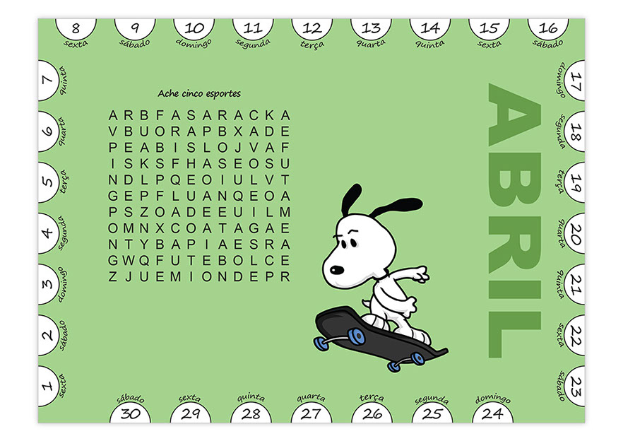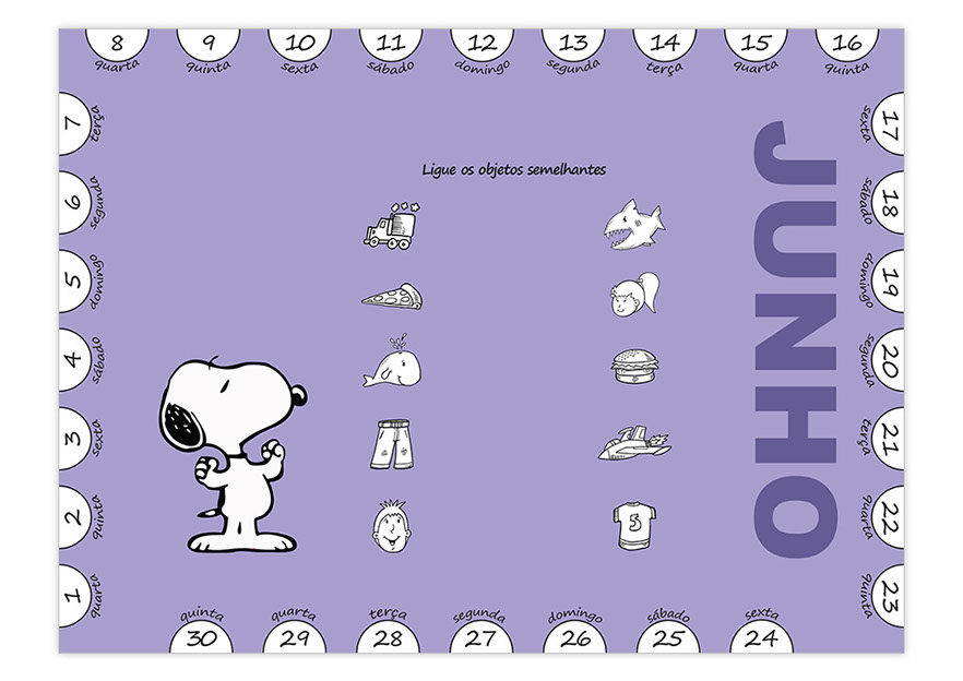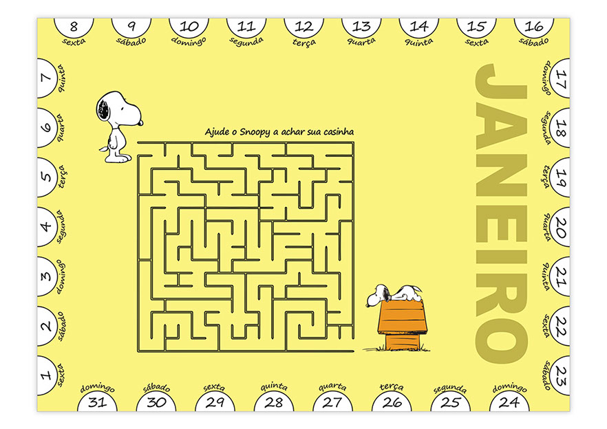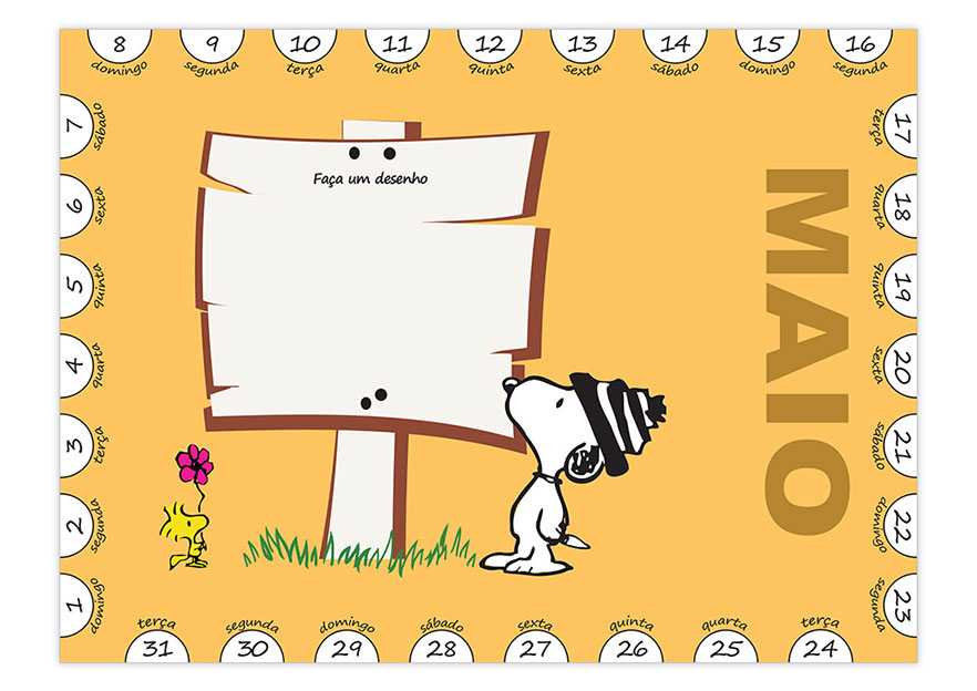 Proposta: criação de calendário de parede utilizando o personagem Snoopy